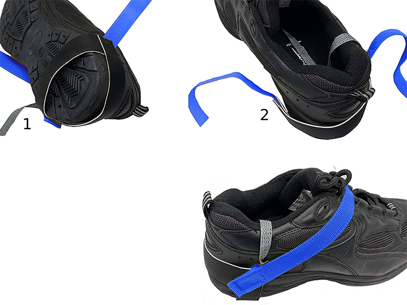 As tiras antiestáticas do calcanhar liberam eletricidade estática do corpo humano para o chão através da fita condutiva. A fita condutora é colocada no sapato ou meias e forma contato elétrico com a pele através do suor, transferindo efetivamente a eletricidade estática.